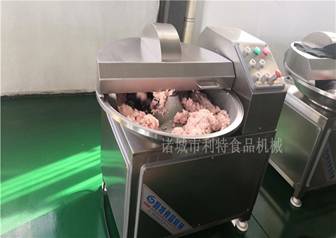 溫度過高導致蛋白質變性凝固,影響后續工藝。破碎粒度太大,則導致斬拌工藝所需時間延長,同時容易導致混料不均勻;破碎粒度太小又會使肉粒之間提前形成凝膠體,阻礙下一步混料進行。